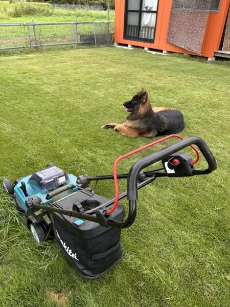 裏庭を芝生にしたのは良いが、伸びが早く芝刈り機を導入。