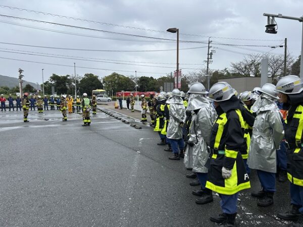 10月は消防団活動が目白押し、消防署員との合同訓練でした。