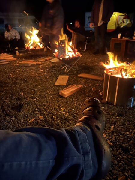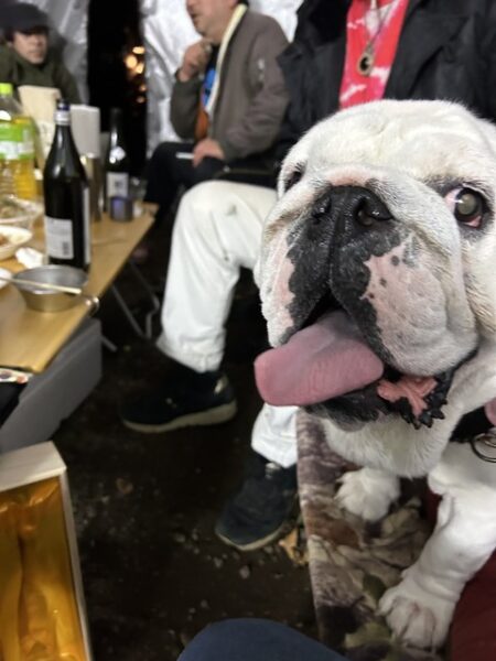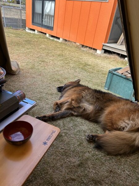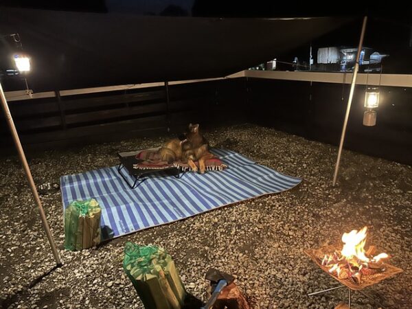 ドックフリーなのでBOSS君も焚火を眺めながらまったりと。